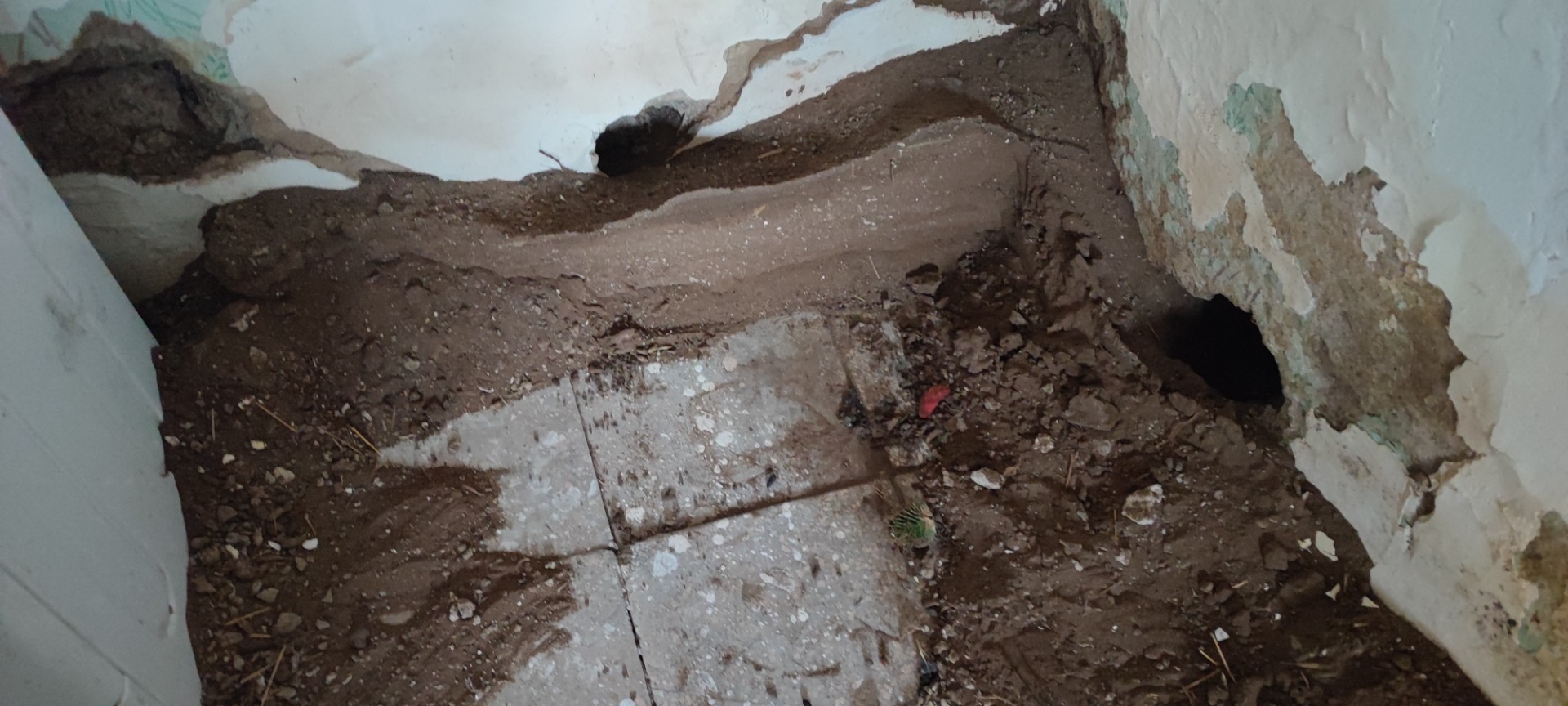 - Járatok, lyukak falakban, padló közelében, a kertben, épületalap mellett vagy a burkolat alatt